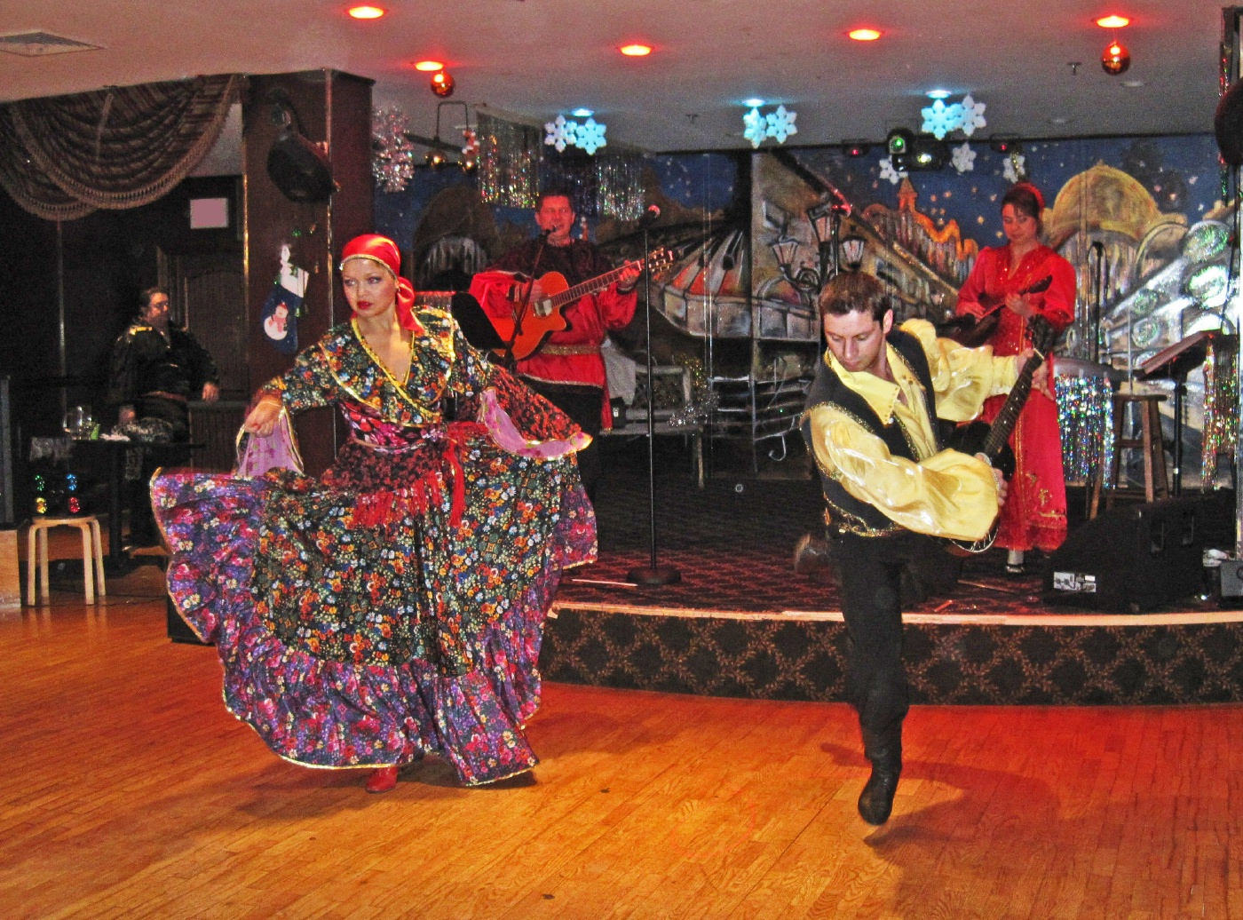 ![]() Russian dancers and musicians, Boston, MAhome | news, updates | dancing videos | music videos | recommendations | photo | merchandise | performances | pressPhotos of Russian folk singer Alexander Menshikov, dancers Alexey Maltsev, Valentina Kvasova, musicians Mikhail Smirnov, Elina Karokhina during free public performance at the New Arbat Russian Restaurant in Allston on Saturday, March 5th, 2010. Photos were taken by Francis Hines. Concert arranged by Yekaterina Bolotovskaya, with financial support of ADH "Zabota", 20 Linden street, Allston, MA, 02134. Dancers, singers, and musicians of Russian dance and music ensemble Barynya are available for hire for the performing art centers, festivals, schools, libraries, concert halls, restaurants, private and corporate events as one powerful ensemble or in smaller groups. CONTACT INFORMATIONFor the price quote email msmirnov@yahoo.com or call (201) 981-2497.Russian Gypsy folk song and dance "Dve Gitary" (Two Guitars)![]() click to see bigger image Поговори хоть ты со мной, подруга семиструнная, Всё душа полна тоской, а ночь такая лунная... Вот там звезда одна горит так ярко и мучительно. Лучами сердце шевелит, дразня его живительно. Эх, раз, ещё раз, ещё много много раз, Эх, раз, ещё раз, ещё много много раз! Две гитары зазвенев жалобно заныли С детства памятный мотив, друга милый, ты ли? И от зари, и до зари тоскую, мучусь, сетую. Дай, боже, мне договорить ту песню недопетую... Эх, раз, ещё раз, ещё много много раз, Эх, раз, ещё раз, ещё много много раз! Watch "Two Guitars" by Barynya on YouTube Russian traditional song and dance "Metelitsa" (The Snowstorm)![]() click to see bigger image