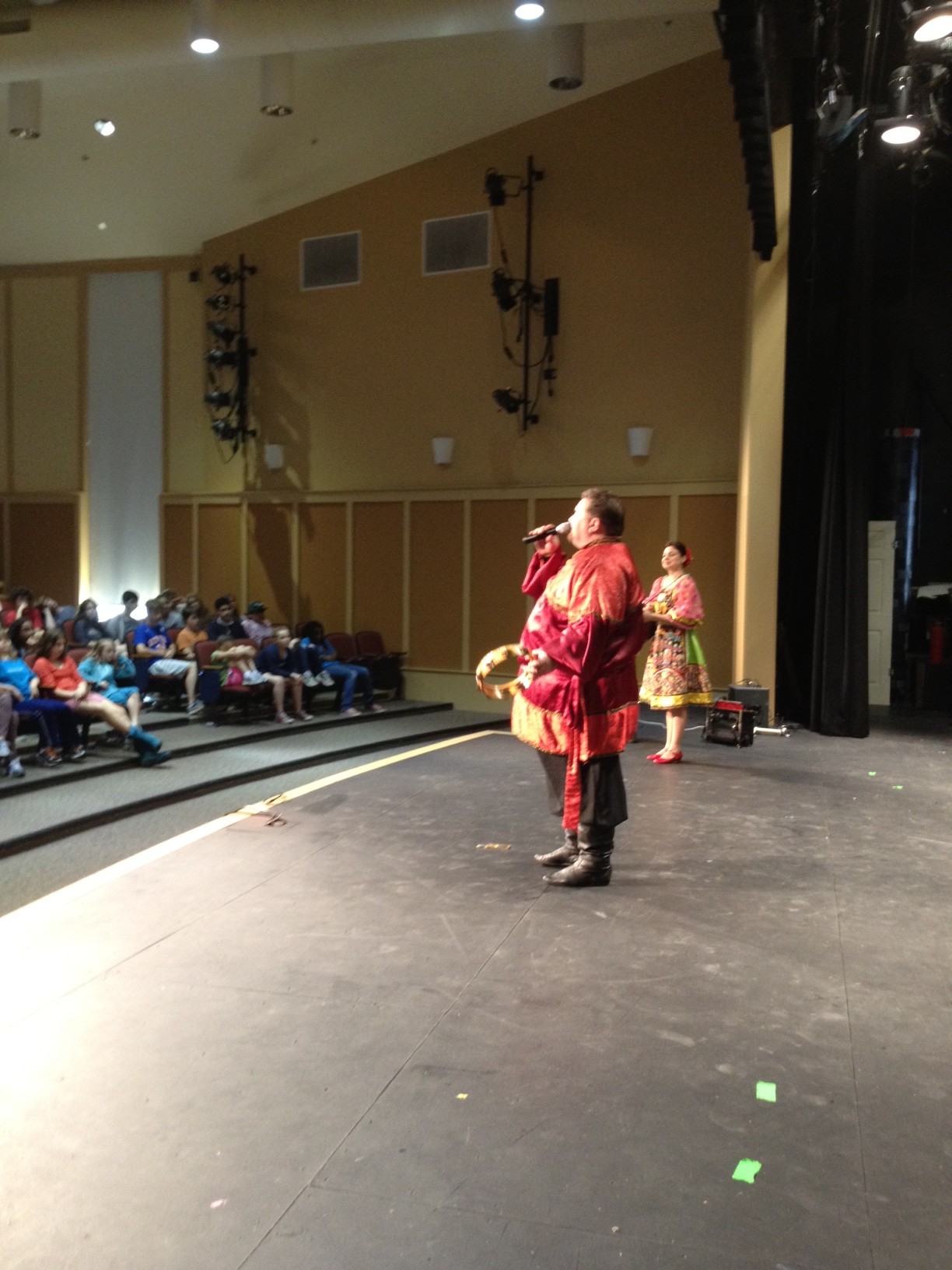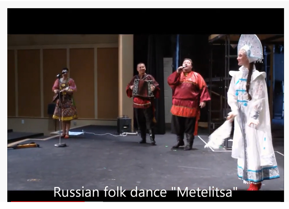 Russian dance and music balalaika duo {Elina Karokhina and Mikhail Smirnov} performed 45 min program for kids at the Washington Hebrew Congregation, 3935 Macomb St., NW, Washington, DC 20016 on Wednesday, March 4th, 2015. The program of the performance included Siberian Nanai wrestling dance "Bor'ba Nanaiskikh Malchikov", Russian folk song "Kalinka", Russian dance "Metelitsa" (The Snowstorm), Russian Medley "Angry Husband" and "Felt Boots" (balalaika solo, instrumental), Russian tongue-twisters, Russian Jewish wedding dance, Russian Alphabet lesson, Russian Gypsy song and dance "Dark Eyes", Russian percussion band plays "The Peddlers", Russian dance workshop, "Chardash" (balalaika solo. instrumental), Russian Bear dance.